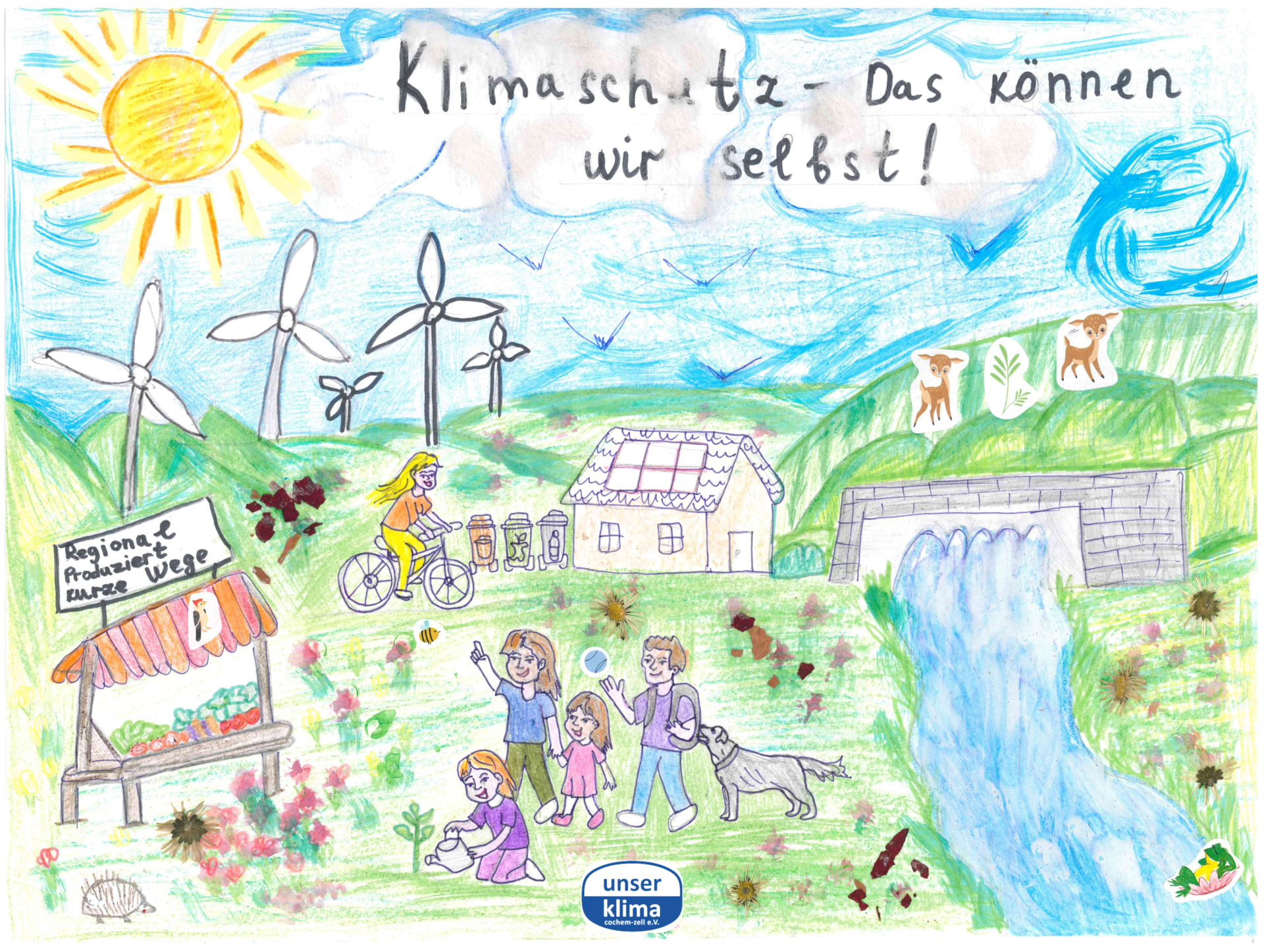 Unter dem Motto "Klimaschutz - Das können wir selbst!" und mit dem Fokus auf das Nachhaltigkeitsziel 7 "Bezahlbare und saubere Energie" der Vereinten Nationen brachten die Schülerinnen und Schüler ihre ganz persönlichen Vorstellungen zu Papier. Von Mitte Juli bis zum Beginn der Klimawoche des Landkreises im November 2025 entstanden zahlreiche, vielfältige Bilder. Ziel des Wettbewerbs war es, die Schülerinnen und Schüler zu motivieren, auf kreative Weise zu zeigen, wie Energie in unserer Region klimafreundlich erzeugt wird.